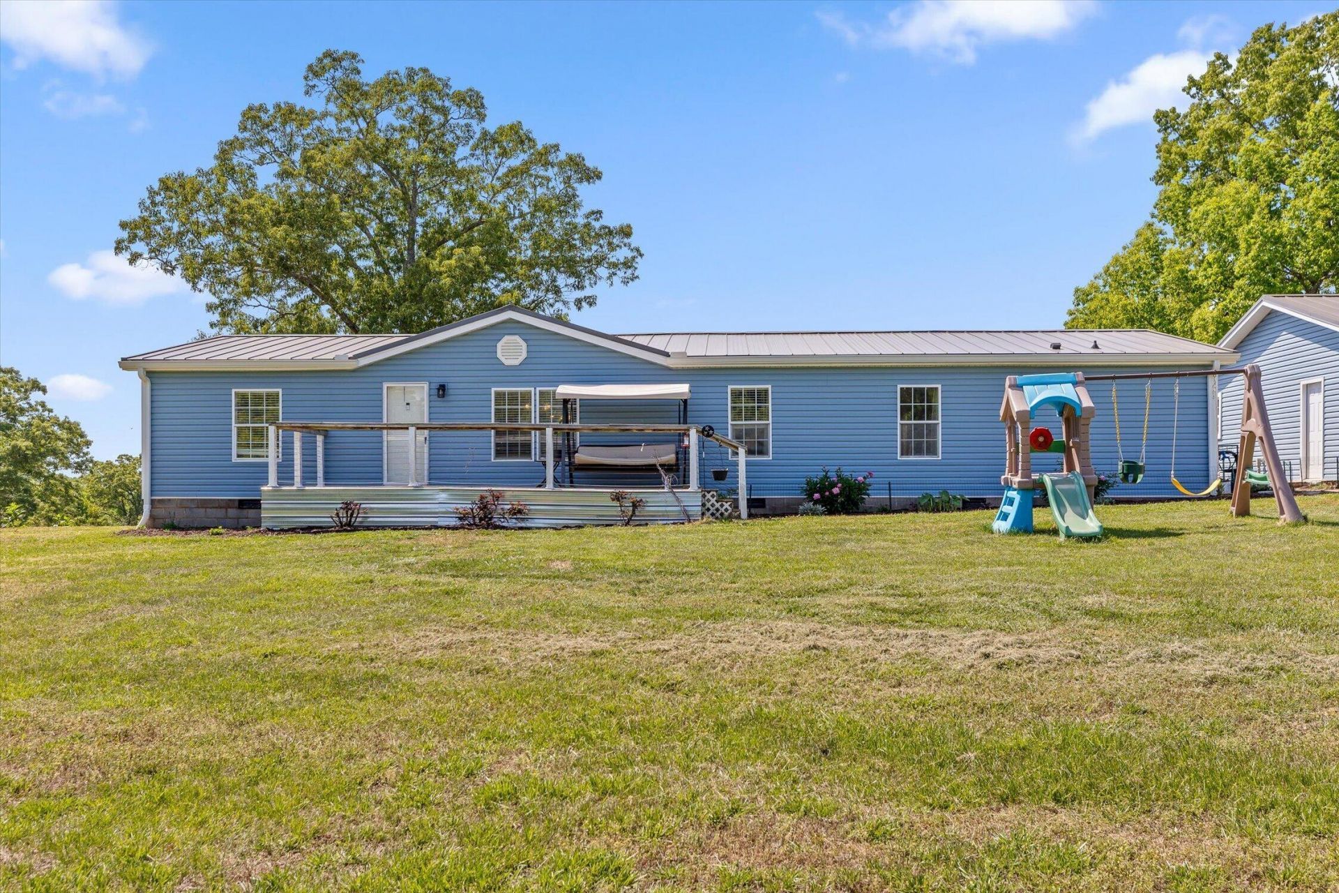 Peaceful riverside living on more than five acres! 1165 Charles Road features a spacious, well-maintained 3-bedroom, 2-bath manufactured home set on 5.26 acres along the Hiwassee River, offering space, privacy, and natural beauty. Recent updates include brand-new metal roof and siding. The home offers an open-concept layout with two living areas--one featuring a wood-burning fireplace with floor-to-ceiling stone surround--and a spacious kitchen with beautiful cabinetry, ideal for gathering and entertaining. The split-bedroom floor plan provides a private primary suite on one side of the home, with two additional bedrooms and a full bath on the other. A breezeway connects the home to an oversized two-bay garage, complete with a separately heated & cooled office space--perfect for a workshop, home business, or additional storage. Enjoy the outdoors from the large front porch, while the mostly cleared backyard offers paths for recreational vehicles and direct access to the river. Additional opportunity: The neighboring home on over two acres is also available (MLS #1532977). Together, the properties offer more than seven acres, plus the potential for a second income-producing residence. Don't miss this rare opportunity to own a private riverside property with space, flexibility, and scenic surroundings.